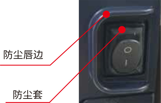 电源开关有“防尘唇边”和“防尘套”,使用更安全、防尘效果更好。